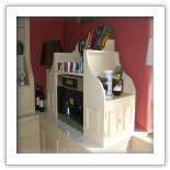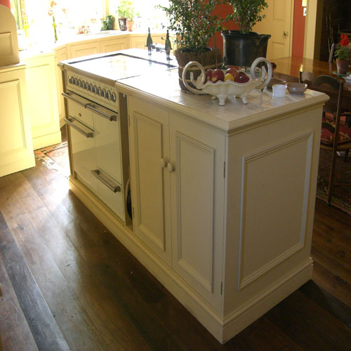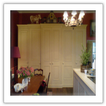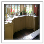 Darren was commissioned by a local Interior Designer to add and make new items to a local National Trust Property in Hampshire, They bay window Sink and cabinets was a new addition and the cooker island was rebuilt to allow for modern appliances and a new radiator in the rear of the island was a new feature to the Kitchen. The large freestanding larder was extended in width which had to have traditional mouldings hand copied to match.