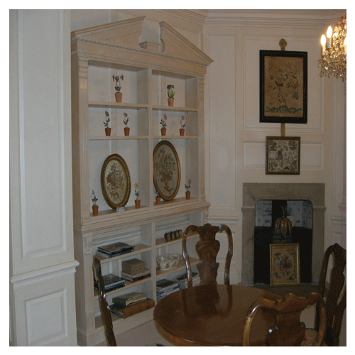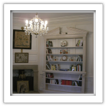 Darren was commissioned by a local Interior Designer to make new items to a local National Trust Property in Hampshire, In this room there was an existing bookcase that was used as a guide to make a double bookcase and a pair of single bookcase that also covered a pair of small radiators beside the windows. The Bookcase were made of hardwood and then painted by hand and aged to match the original bookcase.